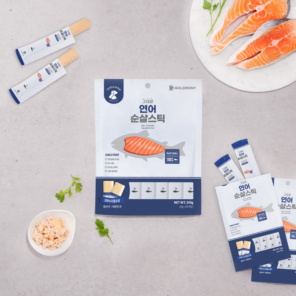 Goldrony's boneless salmon sticks are made with the best domestic raw materials edible by humans, and are a clean natural snack with no salt, no preservatives, and no additives.