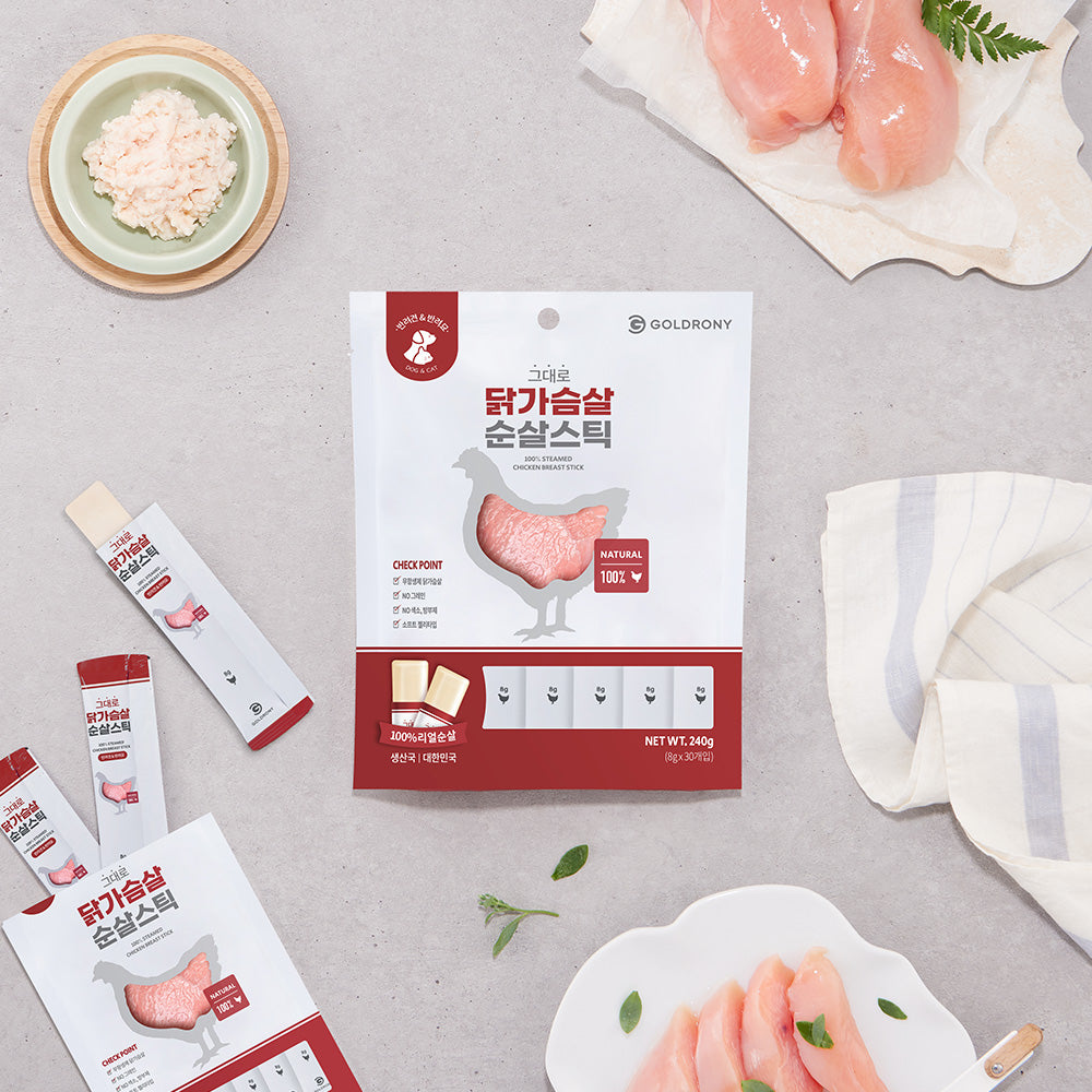 They are HACCP-certified domestically produced, so can eat them with confidence. It is a chewy, soft, non-greasy pudding-type boneless stick snack loved by both cats and dogs. It is easy to like and can be enjoyed by all ages. It is also low in calories and salt, so you can feed it with confidence. Made with clean, antibiotic-free Jeju chicken breast filled with vitamins, sweet potatoes, and agar without any additives.