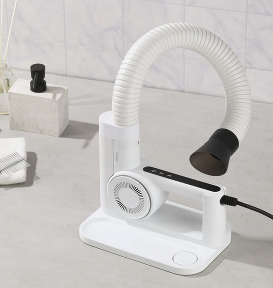 * Efficient and versatile pet drying solution for handheld or hands-free operation, featuring a flexible 360-degree tube for easy access to your pet's entire coat. Quiet operation keeps your pet at ease, while the included standing base, wall mount attachment, and clamp offer various setup options.