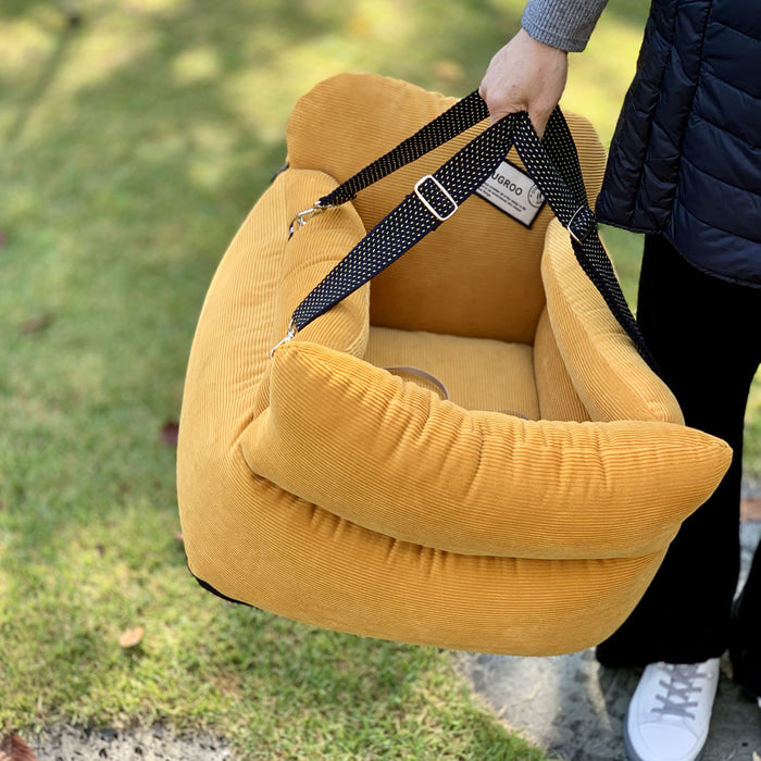 DUGROO Premium 2-Way Driving Bed is designed to minimize vibration in order to reduce your dog's car sickness. It fits in the passenger seat and the back seat with its sturdy thickness and weight.
